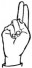 На ћирилици написано ЛУКА БИБЕР састоји се из 9 слова [?]. Исписано ћириличном једноручном азбуком за глувонеме: